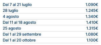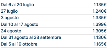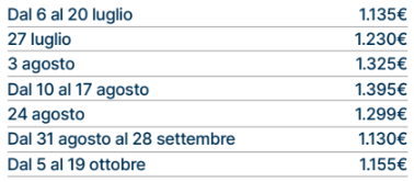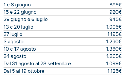 Le tariffe non comprendono eventuali promozioni da verificare al momento della prenotazione. Le tariffe riportate potrebbero non comprendere polizze assicurative integrative, adeguamento carburante (ove i trasferimenti fossero inclusi), eventuali tessere iscrizione, tasse, pulizie, consumi, ecc.; in tal senso è possibile richiedere accesso a listino dettagliato via mail, scrivendo a: numerouno@aldiladeisogniviaggi.it