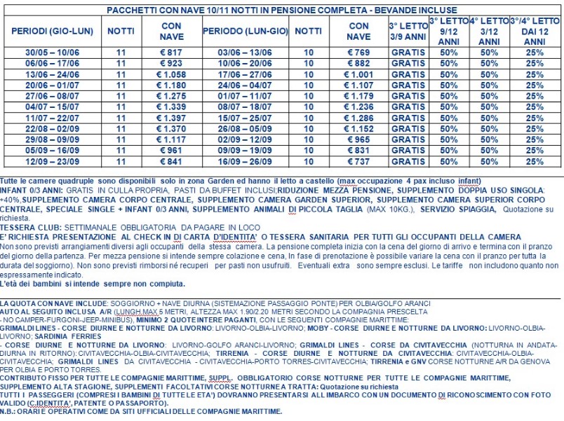 Le tariffe non comprendono eventuali promozioni da verificare al momento della prenotazione. Le tariffe riportate potrebbero non comprendere polizze assicurative integrative, adeguamento carburante (ove i trasferimenti fossero inclusi), eventuali tessere iscrizione, tasse, pulizie, consumi, ecc.; in tal senso è possibile richiedere accesso a listino dettagliato via mail, scrivendo a: numerouno@