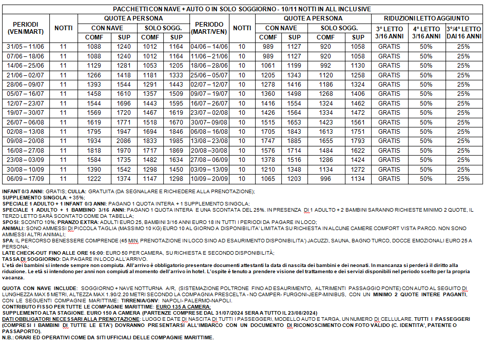 Quota individuale* PACCHETTI CON NAVE + AUTO O IN SOLO SOGGIORNO - 10/11 NOTTI IN ALL INCLUSIVE
