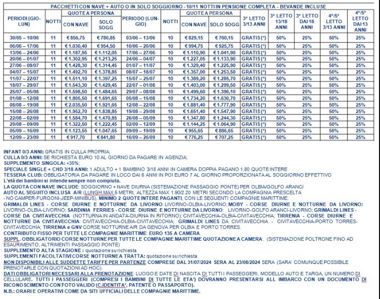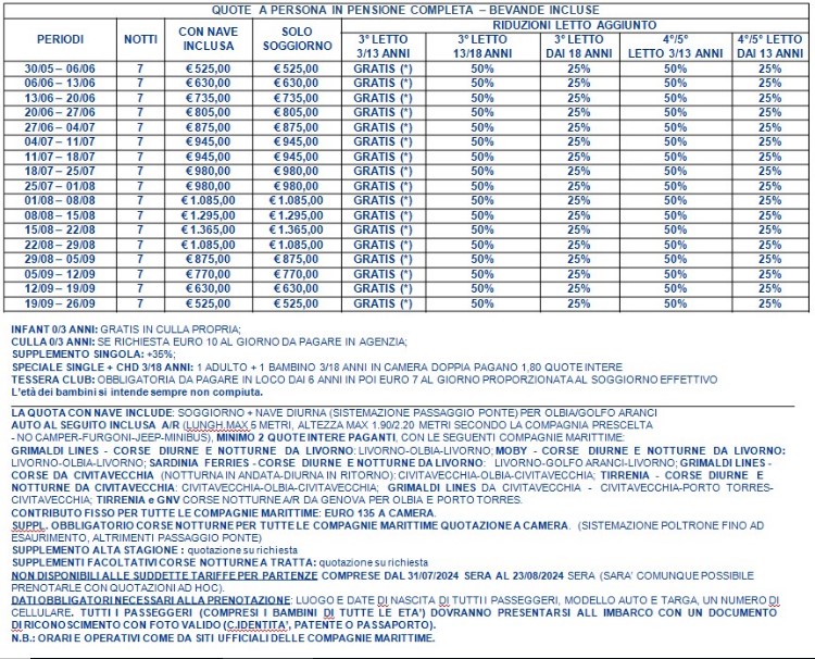 Le tariffe non comprendono eventuali promozioni da verificare al momento della prenotazione. Le tariffe riportate potrebbero non comprendere polizze assicurative integrative, adeguamento carburante (ove i trasferimenti fossero inclusi), eventuali tessere iscrizione, tasse, pulizie, consumi, ecc.; in tal senso è possibile richiedere accesso a listino dettagliato via mail, scrivendo a: numerouno@