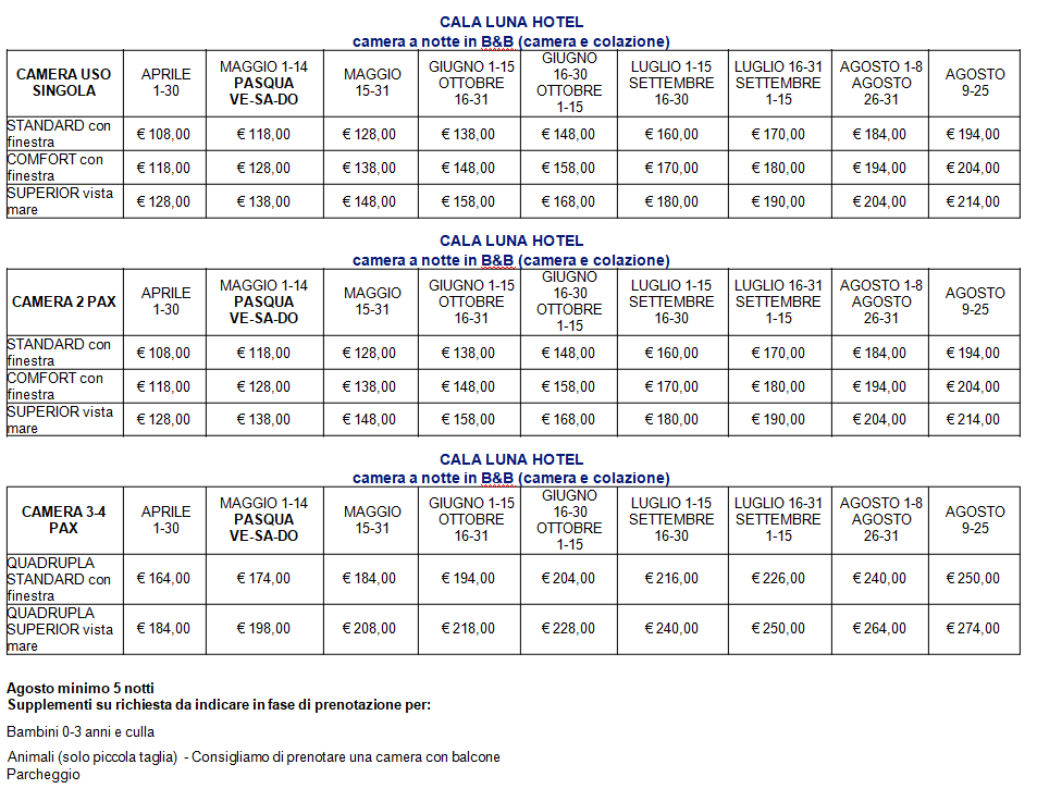 Le tariffe non comprendono eventuali promozioni da verificare al momento della prenotazione. Le tariffe riportate potrebbero non comprendere polizze assicurative integrative, adeguamento carburante (ove i trasferimenti fossero inclusi), eventuali tessere iscrizione, tasse, pulizie, consumi, ecc.; in tal senso è possibile richiedere accesso a listino dettagliato via mail, scrivendo a: numerouno@