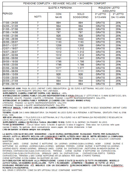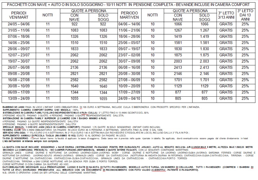 Quota individuale* Quota individuale* PACCHETTI CON NAVE + AUTO O IN SOLO SOGGIORNO - 10/11 NOTTI IN PENSIONE COMPLETA - BEVANDE INCLUSE IN CAMERA COMFORT