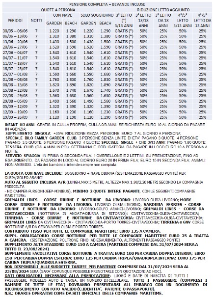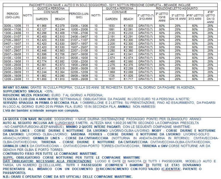 Quota individuale* PACCHETTI CON NAVE + AUTO O IN SOLO SOGGIORNO - 10/11 NOTTI IN PENSIONE COMPLETA- BEVANDE INCLUSE